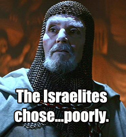 Anyway…he goes to war, and God grants him victory. So Jephthah returns home, only to be greeted by…drumroll please…his daughter, who is his only child. Not the homecoming he was expecting. So as a rational man you’d think he’d say to God something like, “Oh…you know I didn’t mean a family member right? I mean, I know I didn’t get all specific, but we both know having to offer you a person I love dearly wasn’t really in the cards. I mean, that would be ridiculous. You wouldn’t want me to do that right? Right. So, let’s just see what else comes out of the Casa de Jephthah that I can offer to you.”
