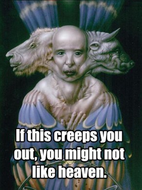 * A description of heavenly beings that sound more like aliens than angels.  If people knew angels in heaven really looked like this, Angels in the Outfield would’ve been the scariest horror movie ever made.