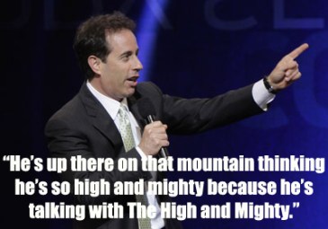 I can imagine the local Hebrew stand-up comedian (and I’m imagining a Jerry Seinfeld slightly-high-pitched-voice here) saying, “And what is the deal with Moses? I mean, have you seen this guy? Me neither! That’s the problem! What could he possibly be doing up there? We haven’t invented skiing yet. And rock climbing isn’t really a hobby or sport since we’re still doing it to survive. What is going on up there?”