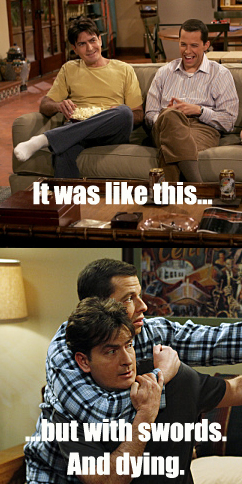That. Is. Intense. I can’t even begin to imagine having to kill my family or friends. That’s just…that’s no joke. When I read this, my jaw hit the floor, and I just sat for a minute, stunned, not knowing how to respond. I might have even drooled in a little in my stupor. If a stranger had been walking by at that moment and taken a second look at me, I’m sure they’d be wondering where my caretaker was and why they left this poor, helpless man all alone, sitting in a puddle of his own drool.
