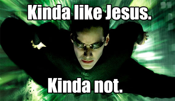 Today wraps up the story of Jesus. The short version is that he’s killed, his followers are all upset and disheartened, he rises from the dead, appears to his followers and instructs them to carry on his work with the help of the Holy Spirit who will empower them to do great things. Then Jesus flies away into heaven, kind of like Neo at the end of The Matrix I guess. Just with less hardcore Goth music.